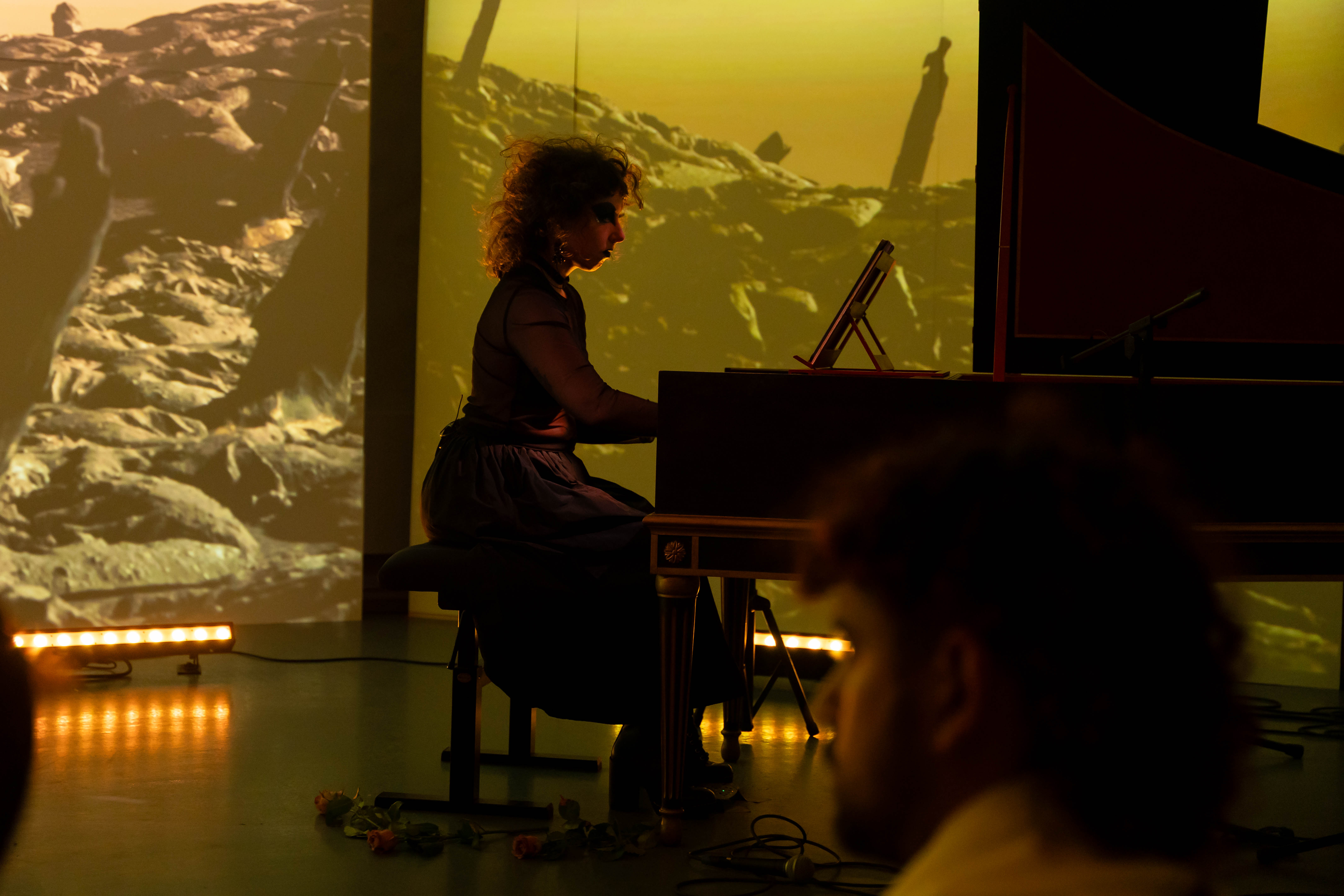 Mit einer einzigartigen Verbindung aus Cembalo, Licht und Video wird die Melancholie der Neuzeit mit der Verlorenheit im Post-Internet-Zeitalter verknüpft und lädt dadurch in eine hybride Welt ein. Gemeinsam mit dem Publikum begibt sich „A Peculiar State“ auf die Suche nach der Frage, warum sich alles so seltsam anfühlt in unserer zersplitterten, postdigitalen Realität.
