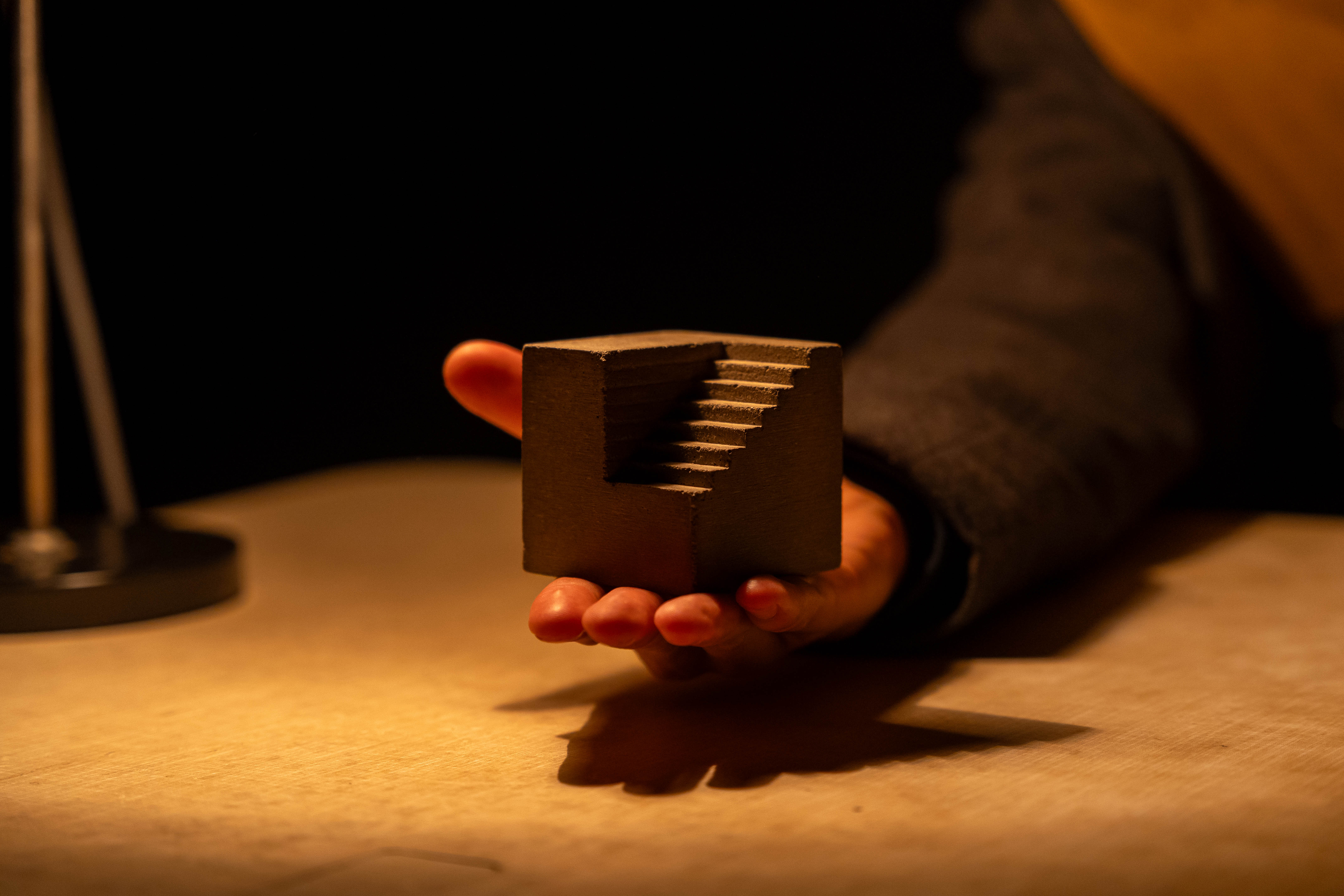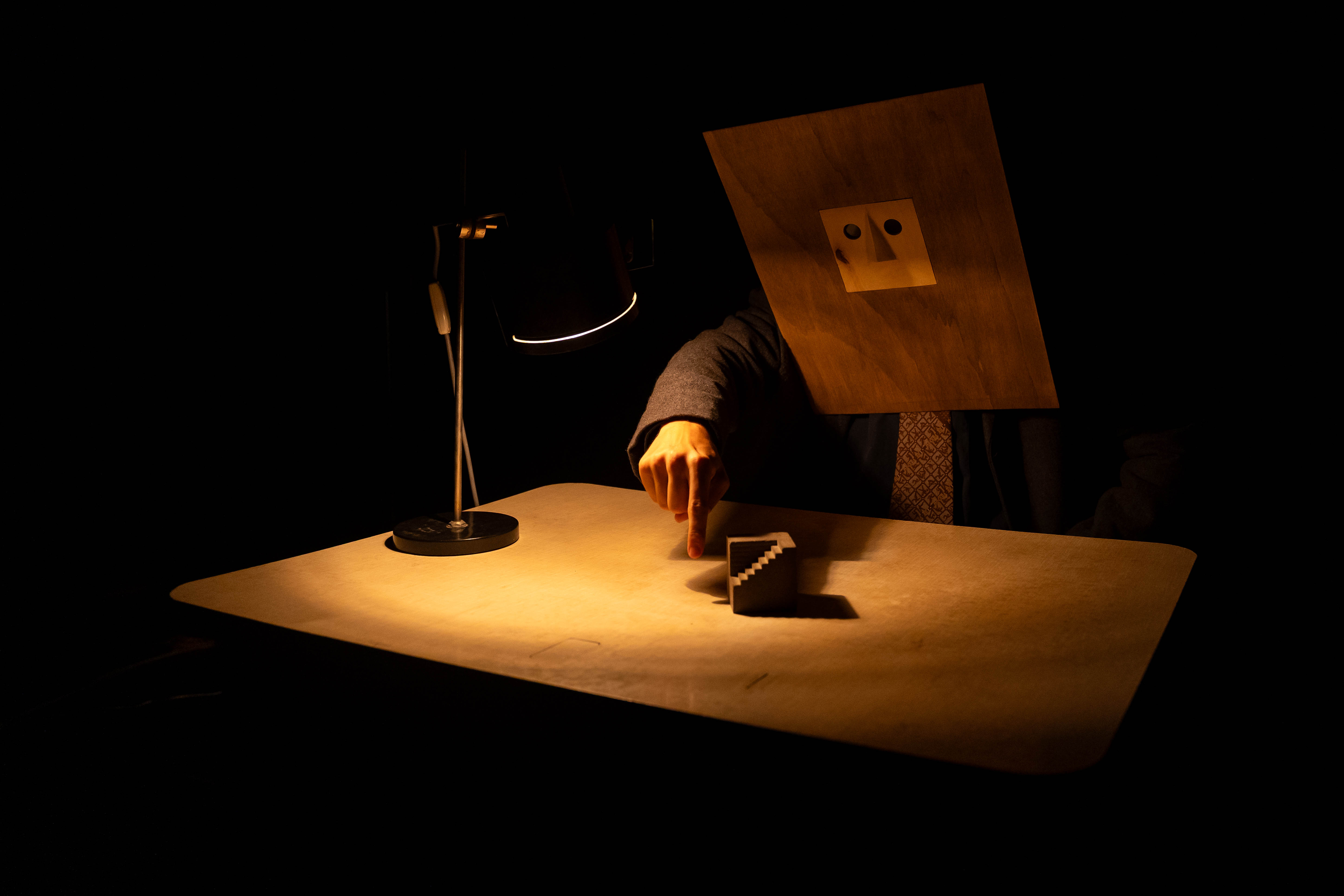 Prefaby ist ein präzise durchdachtes und zugleich bescheiden-intimes Spektakel. Mithilfe komplexer Technologien wie Miniaturrobotik, Computerprogrammierung, Videomapping und 5-Kanal-VR-Sound schafft die Performance eine gemütliche, intime Atmosphäre für 7 Zuschauer*innen und einen Schauspieler. Alles spielt sich auf einem Retro-Tisch ab – mit Hilfe einiger Betonblöcke, in deren Inneren sich automatische Mechanismen verbergen. Das kleine Bühnenbild ist reich an liebevollen Details, die das Publikum in eine Welt der Fantasie eintauchen lassen. PREFABY erzählt eine Geschichte aus einem heute postkommunistischen Plattenbau, die sich buchstäblich vor den Fingerspitzen der Zuschauerinnen entfaltet. Es gibt drei Wohnungen, drei Nachbar*innen, sanften Humor – und einen Hund.